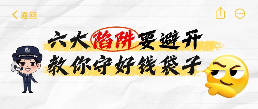 “财富泡沫”陷阱、“转账黑洞”陷阱、“安全账户迷魂阵”陷阱、“信息钓鱼”陷阱、“钱货两空”陷阱、“连环垫资”陷阱……守护好自己的“钱袋子”,是咱老百姓的共同心愿。然而,电信网络诈骗时有发生,稍不留神就可能掉入骗子精心布置的陷阱。别担心!日前,武汉警方精心梳理了今年以来较为活跃的电诈套路,手把手教你识骗避坑,助你牢牢守住“钱袋子”。
