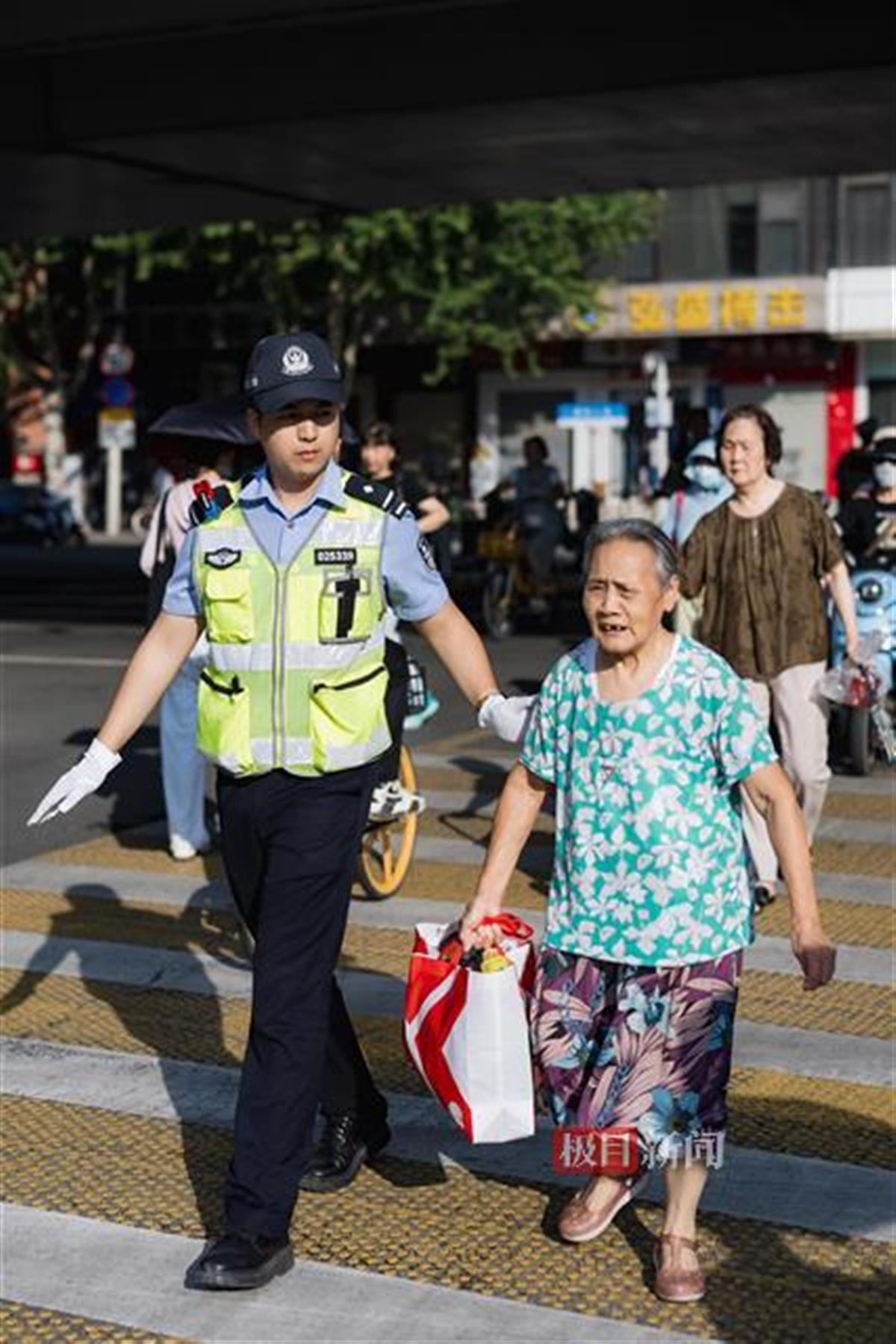 “婆婆,您慢一点!”江岸区交通大队汉警快骑机动队副中队长汪旺跑上前去,搀扶一位腿脚不方便的市民过马路。“以前啊,这里真的堵,这么热的天气,真是多亏了你们!”婆婆握着汪警官的手,满脸欣慰。 “要眼里有活,见事管事,这是在路上执勤的基本功!”汪警官对学警们言传身教。