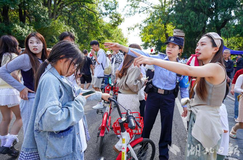 (通讯员 苏畅)“1、2、3……东湖美不美?”“美!”11月29日,在东湖梨园景区,正在巡逻的张蕊偶遇一群来自江苏的游客。她随即化身为“导游”热情地帮助游客拍照留念。