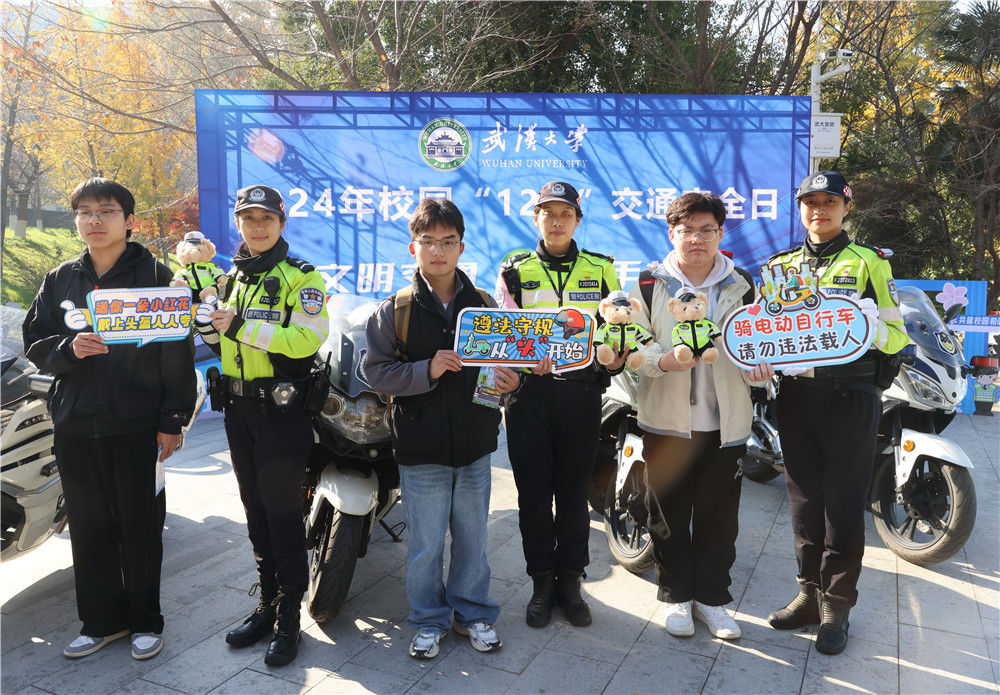 12月2日是第十三个“全国交通安全日”,今年主题为“文明交通 携手共创”。12月2日,湖北省武汉市公安局武昌区交通大队民警走进武汉大学,开展校园“12.2”交通安全主题宣传活动,通过丰富的互动形式,向师生传递“文明交通 携手共创”理念,进一步提升学生交通安全风险防范意识。