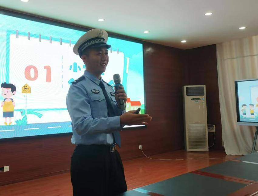 在日常出警巡逻之余,丁哲轩最爱去辖区中小学进行交通安全知识宣讲。