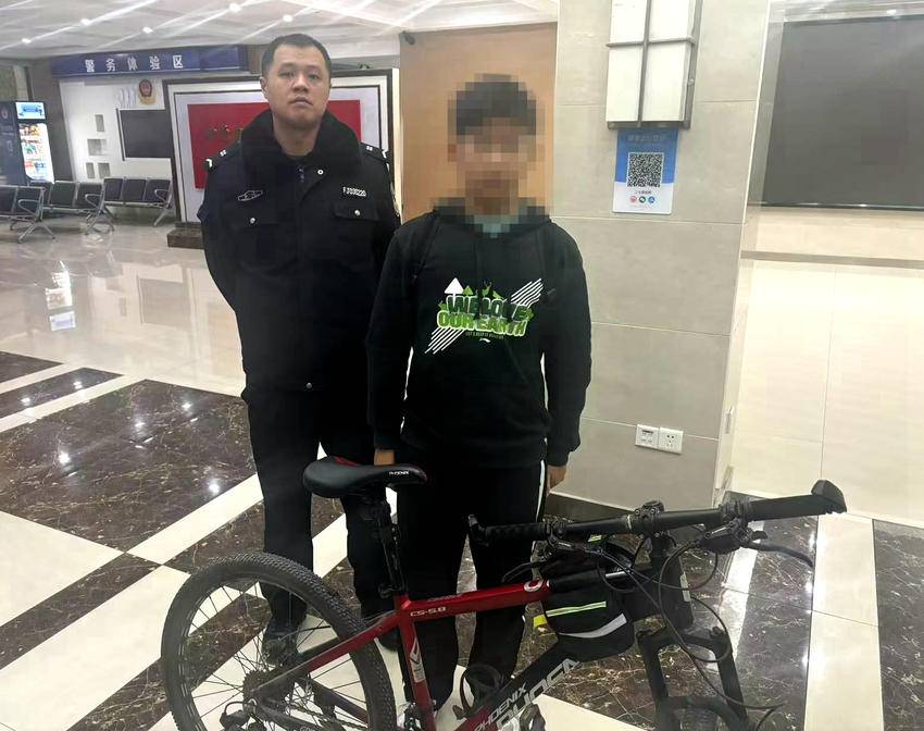 1月4日下午3时许,武汉市公安局江岸区分局二七街派出所接到初中生屠同学报警,称其自行车在上东汇广场花坛处丢失,在附近寻找无果只得报警求助,希望民警能够帮忙找回。