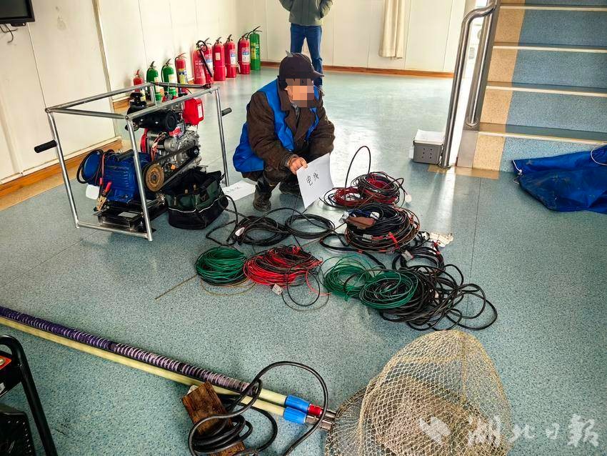 去年底,渔政执法人员在市场发现7尾野生鮰鱼,排查获知有人违法电鱼。梳理线索后,他们将视线锁定在江夏金口中山舰码头、铁板洲至武汉经济技术开发区汉南水域。渔政联合水上公安经过现场侦察后,制定了精细抓捕预案。