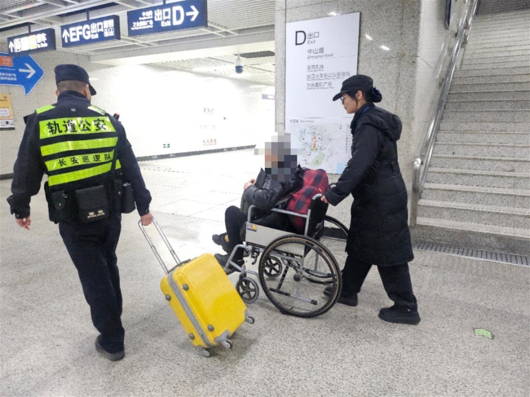 考虑到婆婆已经受伤,而廖女士又行动不便,吴长安主动提出由自己将婆婆送到武昌火车站进站口与廖女士会合。在安排好站内勤务后,吴长安与辅警乐欣、护卫高珊、站务员范子轩一起,用轮椅将贾婆婆护送至武昌火车站进站口。