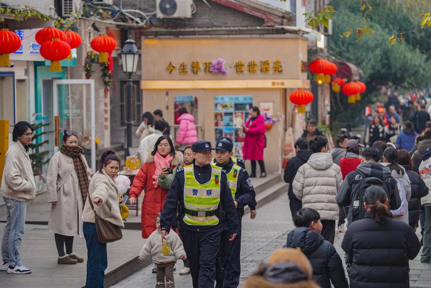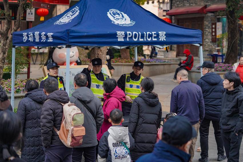“请问粮道街怎么走?”粮道所民警陈逸夫在移动警务室耐心为游客答疑解惑。为更好服务群众,分局巡逻大队还在景区设置移动警务室,为游客提供咨询引导、安全宣传等“零距离”便民服务,让群众求助更方便、民警出警更快捷。