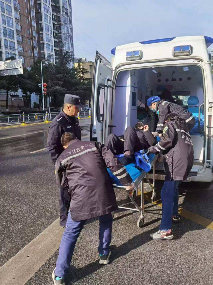 2月8日9时许,江夏区纸坊4路公交车行驶至谭鑫培路普安村路段时,七旬老人张爹爹突发晕厥。接警后,潘时涛带领辅警杨鑫、李祥火速前往现场处置。