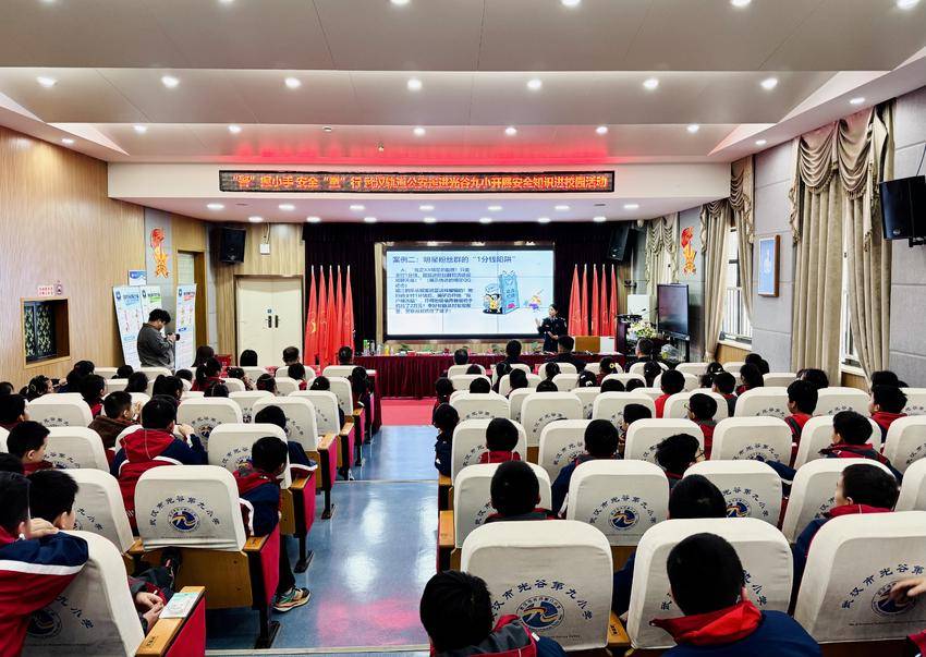(通讯员张祖华、李文茂、王虎)春意渐浓书声起,平安护航开学季。新学期的钟声敲响,为进一步推进平安校园建设,引导学生安全、文明乘坐地铁出行,提升学生安全防范意识和自我保护能力,2月20日下午,武汉市公安局轨道交通管理分局组织民警走进武汉市光谷第九小学开展“安全知识进校园”活动,为150余名学生送上生动的“安全第一课”。东湖高新区教育局综合治理办公室领导、轨道交通管理分局民警辅警代表和光谷第九小学师生代表共同参与本次活动。