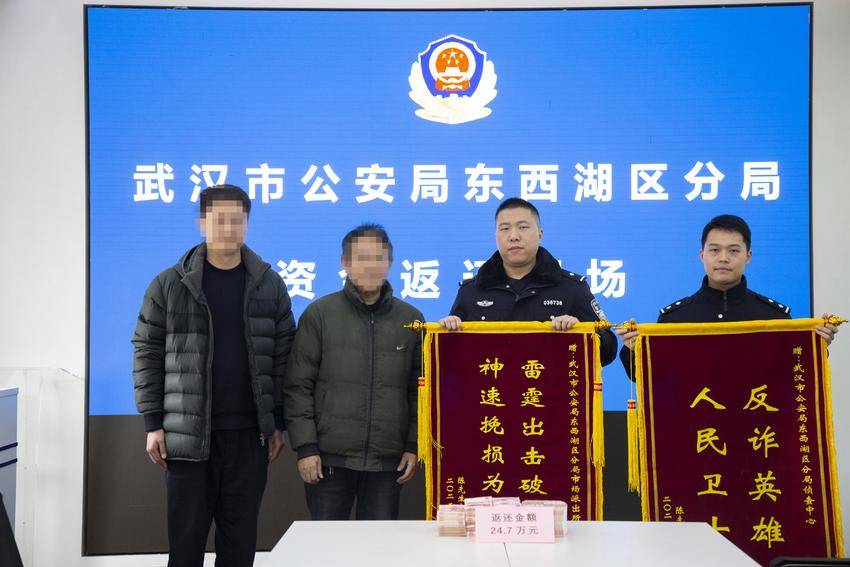 (通讯员李黎明、刘煜)“感谢人民卫士,帮我追回了‘养老钱’!”2月19日15时许,年过七旬的陈爹爹赶赴武汉市公安局东西湖区分局刑侦大队内,紧握着办案民警的手不住地感谢。刑侦民警肖开阳现场将24.7万元的涉诈资金发还给受害人陈爹爹及其亲属。