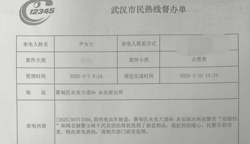 “没想到这么小的案子民警同志如此上心!”3月7日,尹女士通过市民热线向永安街派出所点赞说:“永安街派出所的范银钰警官和两名辅警不厌其烦地帮我找到了被盗物品,我感到很暖心,民警尽职尽责,特此来电表扬。”