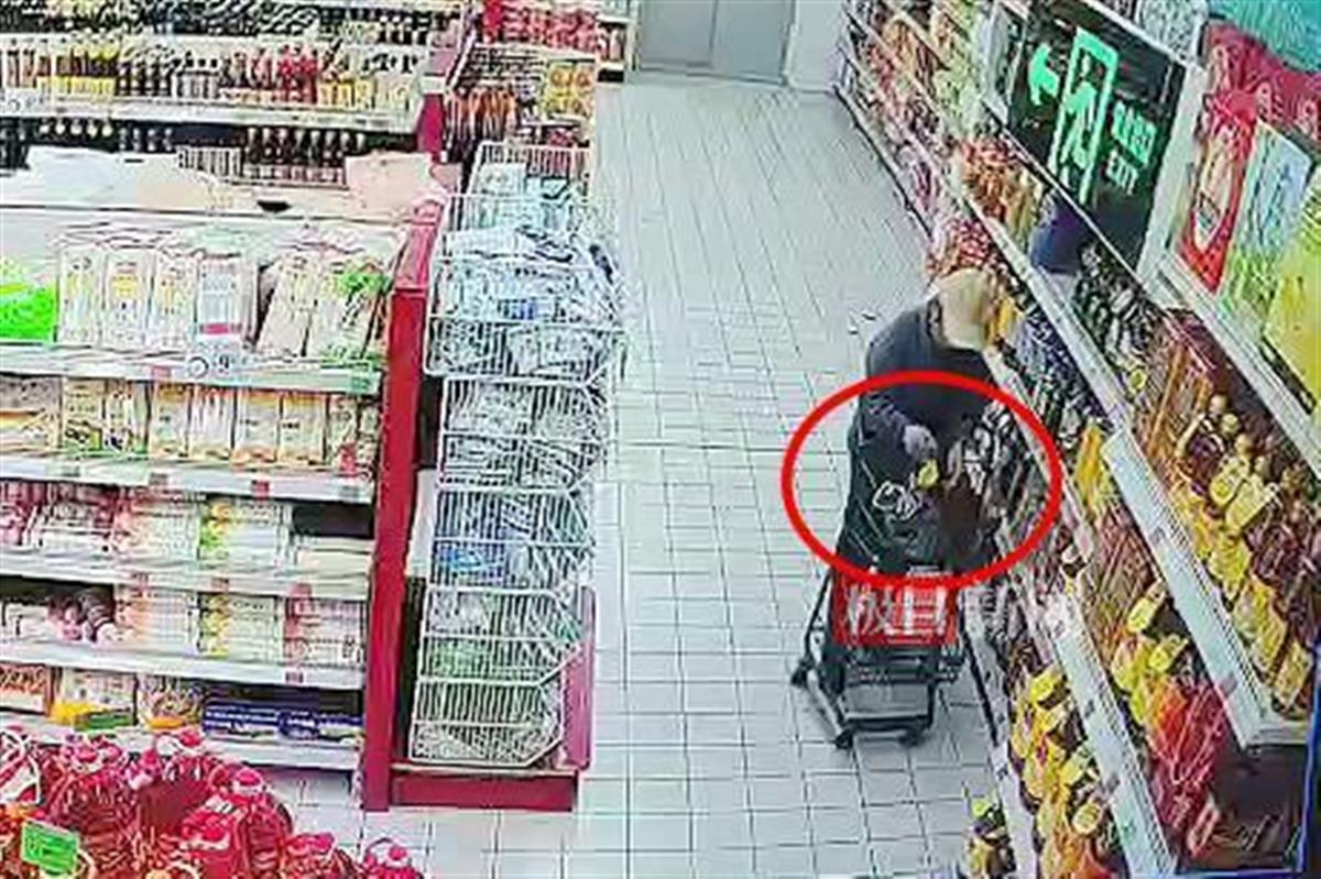 男子逛超市只付了洋葱钱,将两桶食用油塞进背包带走