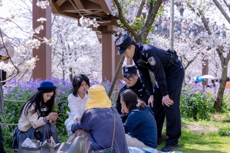 樱花季期间,武汉公安投入充足的安保警力,在武汉大学、东湖樱花园等核心景区,通过设置外围圈、闸机控制圈、赏樱核心圈“三圈”防控,实现人流分级管控。各警种强化支援联动,交通民警现场疏导,便衣民警上路反扒,特警队员机动待命,治安部门配合相关部门查处侵害游客权益的违法违规行为,确保群众获得最佳“赏樱”体验。