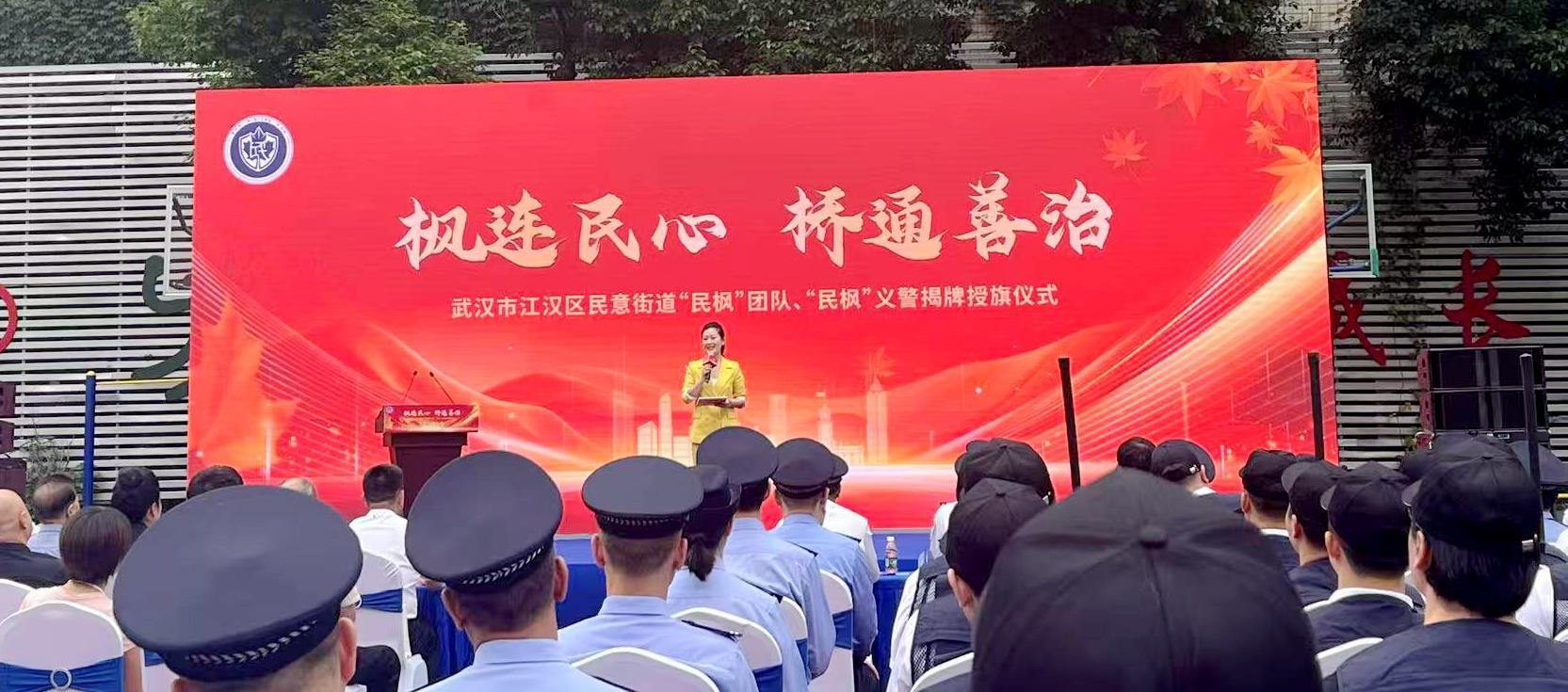 “发动和依靠群众,坚持矛盾不上交,就地解决……”5月18日,一句耳熟能详的“枫桥经验”经典表述,在武汉市第七十五中学内激荡回响。当日,武汉市江汉区民意街道“民枫”团队、“民枫”义警揭牌授旗仪式举行,一场汇聚社会各界力量的基层共治新实践就此拉开帷幕。