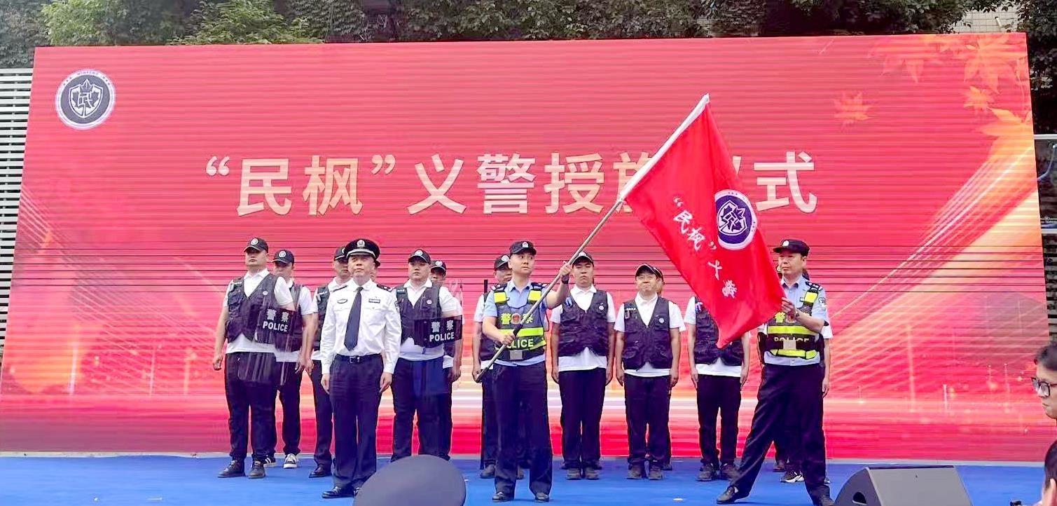 揭牌授旗仪式上,江汉区公安分局主要负责人郑重地向“民枫”团队团长颁发牌匾,为“民枫”义警队长授旗,标志着这支基层治理生力军正式上岗。