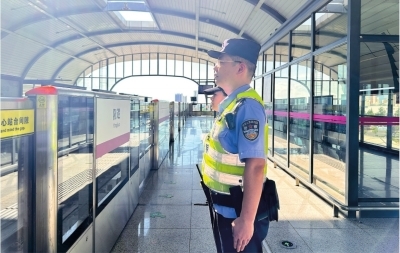 穿好反光背心,把闪烁的红蓝警灯别在肩头,调整好腰部单警装备的松紧,朱正和辅警黄佳拿起装备开始巡逻。“我们必须对每座车站都细细巡查一遍,出入口、站厅、安检区、站台甚至每个厕所都不会放过。”7座车站的200多个消火栓、近500个灭火器,还有各种通道、标牌,甚至地面、墙面,他们都要细细排查。每次值班的24小时里,朱正的步数都超过了2万步。