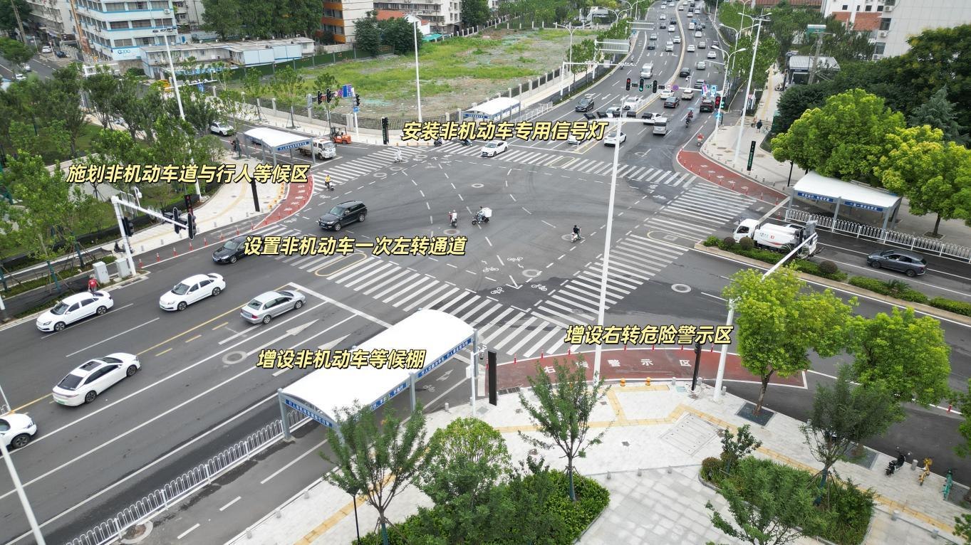 细节完善护安全。新增非机动车等候棚改善骑行体验,施划右转危险警示区并设置醒目标识,提醒机动车驾驶员主动避让,右转事故隐患降低。